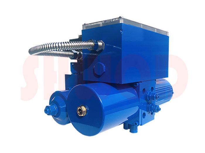 智能型電液聯動執行器由支架,雙作用齒輪齒條執行器、液壓動力源和電氣控製係統組成。 其中液壓動力源包含電機泵組以及手動泵。