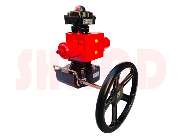 本執行器附帶手動裝置,使用時,向上拉起手柄,轉動手輪,即可實現開閥和關閥。